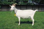 Saanen keçileri kabak (boynuzsuz), erkekleri boynuzludur.